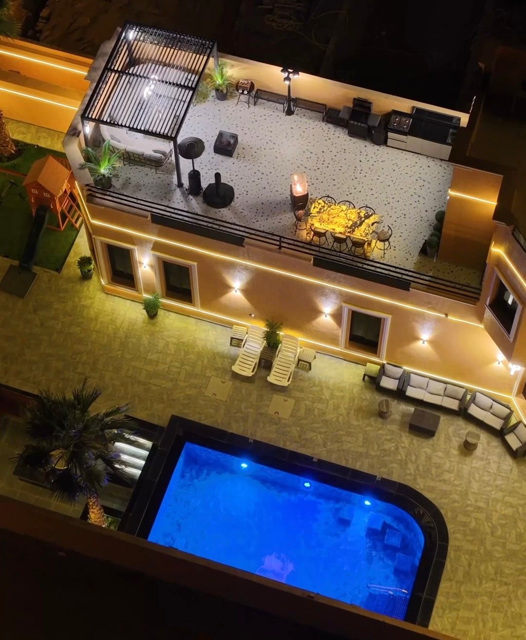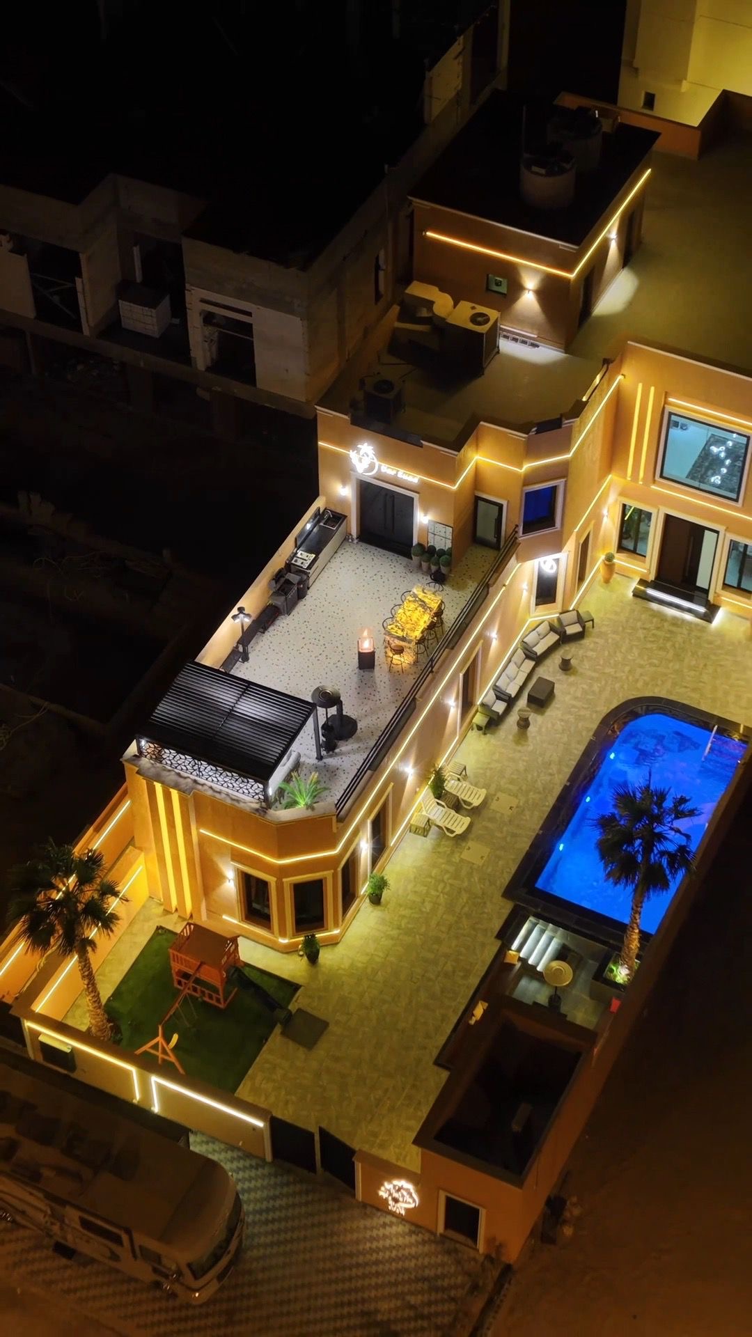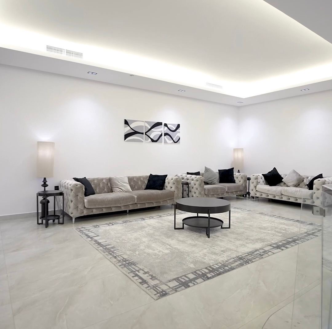 Second row away from the sea for rent Consisting of 6 bedrooms The ground floor consists of: A 5' x 8' outdoor swimming pool with a waterfall and a heated system, 40 to 90 cm deep, suitable for children and adults (cleaned after each tenant) A 6' x 15' living room Kitchen Guest bathroom Coffee corner with a Nespresso coffee machine 3 fully furnished bedrooms (two with a bathroom / one master bedroom) A master VIP maid's room (with two beds) An external driver's room (with two beds) A master VIP maid's room (with two beds) The first floor consists of: A living room overlooking the ground floor 3 fully furnished bedrooms (two with a bathroom / one master bedroom) The bedding is changed after each tenant A rooftop overlooking the swimming pool