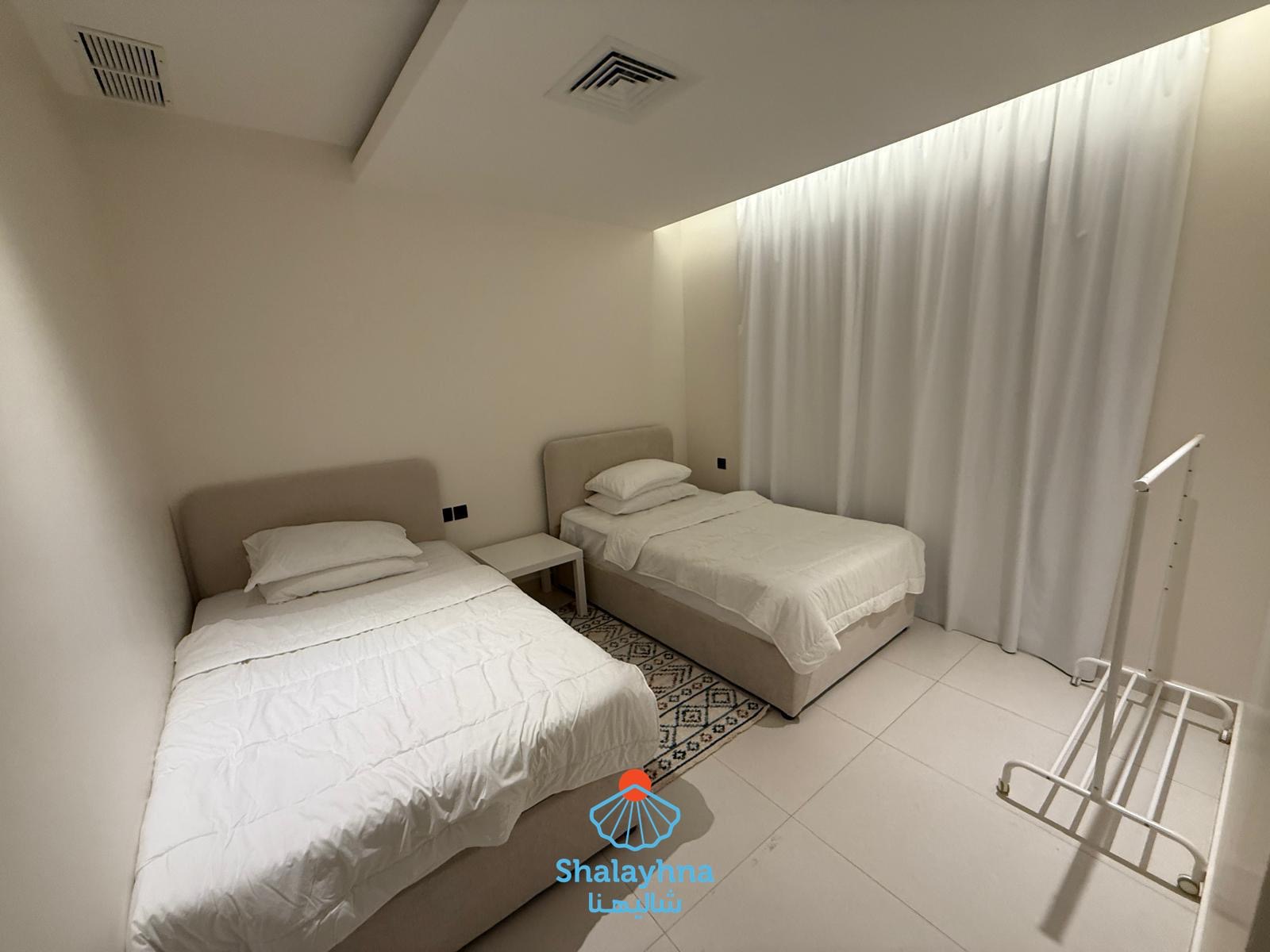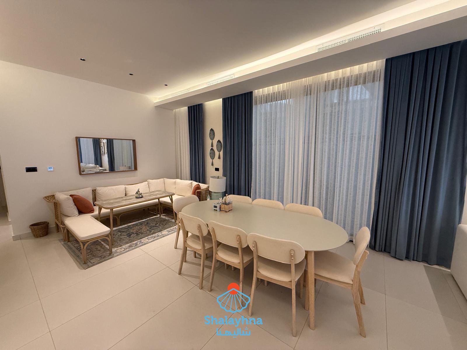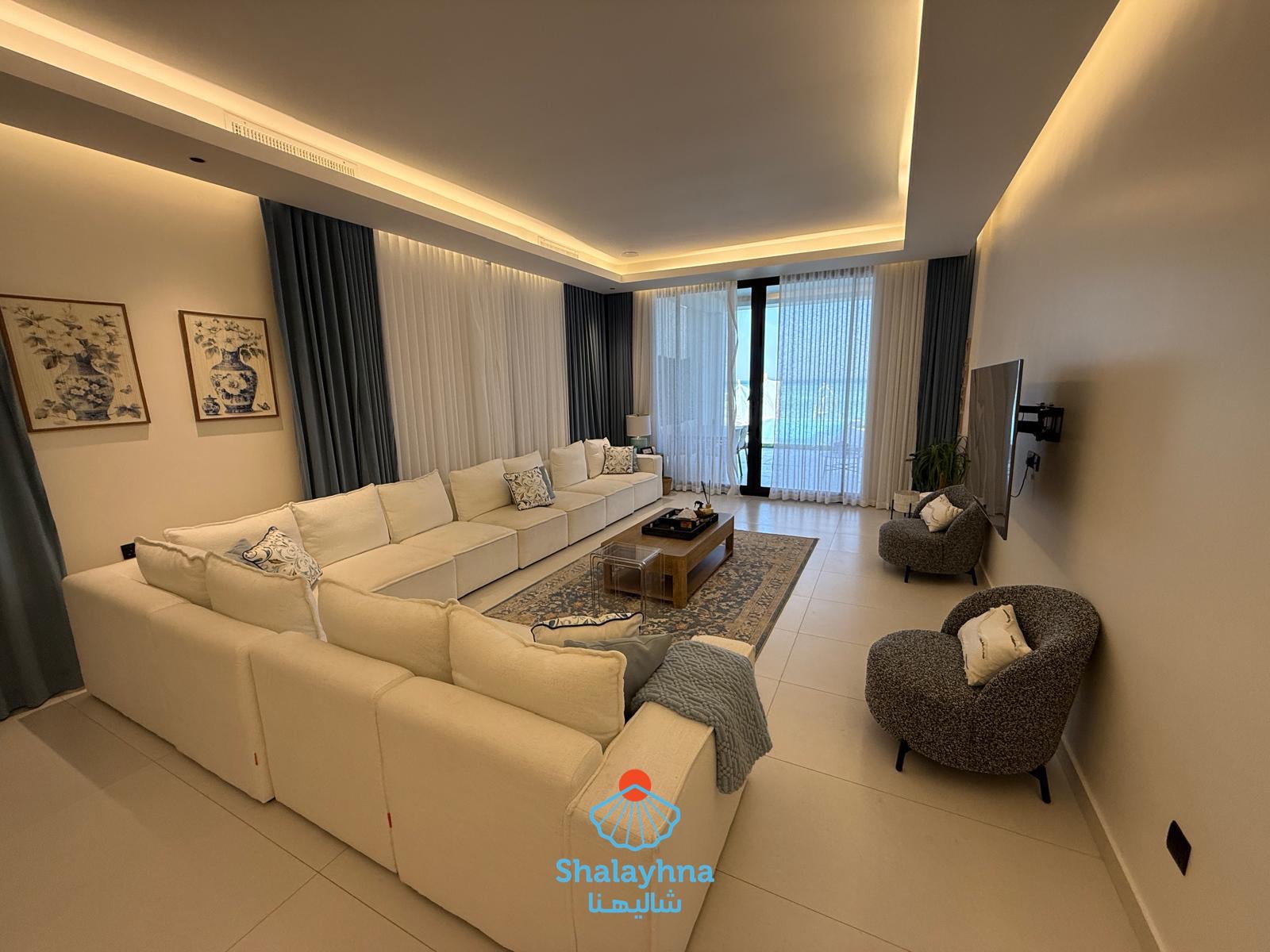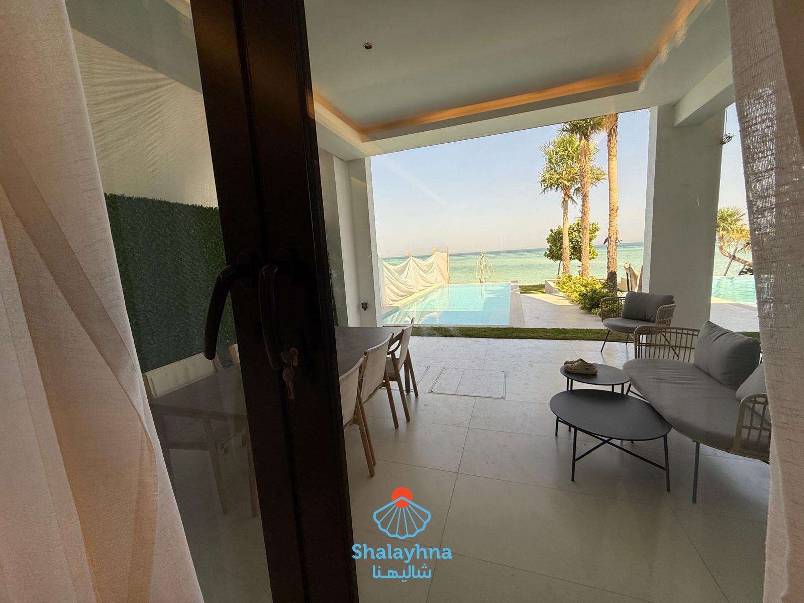 Enjoy a luxurious stay at Sandy Private Chalet, located in Khiran – Road 290. A newly built beachfront chalet, designed for comfort and privacy, for families only 👨👩👧👦 ✨ Chalet Features: Two-floor chalet with direct sea view Private outdoor swimming pool Outdoor seating areas across: Balconies Back garden Sea-view balcony 🌴 🏡 Ground Floor Includes: Balcony overlooking the pool and sea Spacious living room with dining table Guest bathroom 2 master bedrooms Fully equipped main kitchen Maid’s room with private bathroom Cozy back garden with seating area 🛏️ First Floor: 4 master bedrooms Master bedroom with direct sea view and private balcony 🌊 ⏰ Check-in / Check-out: Check-in: 10:00 AM Check-out: 3:00 PM 🔐 Family chalet with shared gate 👮♂️ 24/7 security guard for family safety ⚠️ No groups of young men allowed 📌 Next to Sandy Chalet is “Coastal Retreat,” a completely independent chalet. Each chalet has its own private entrance and full privacy, ensuring a peaceful and comfortable stay for families.