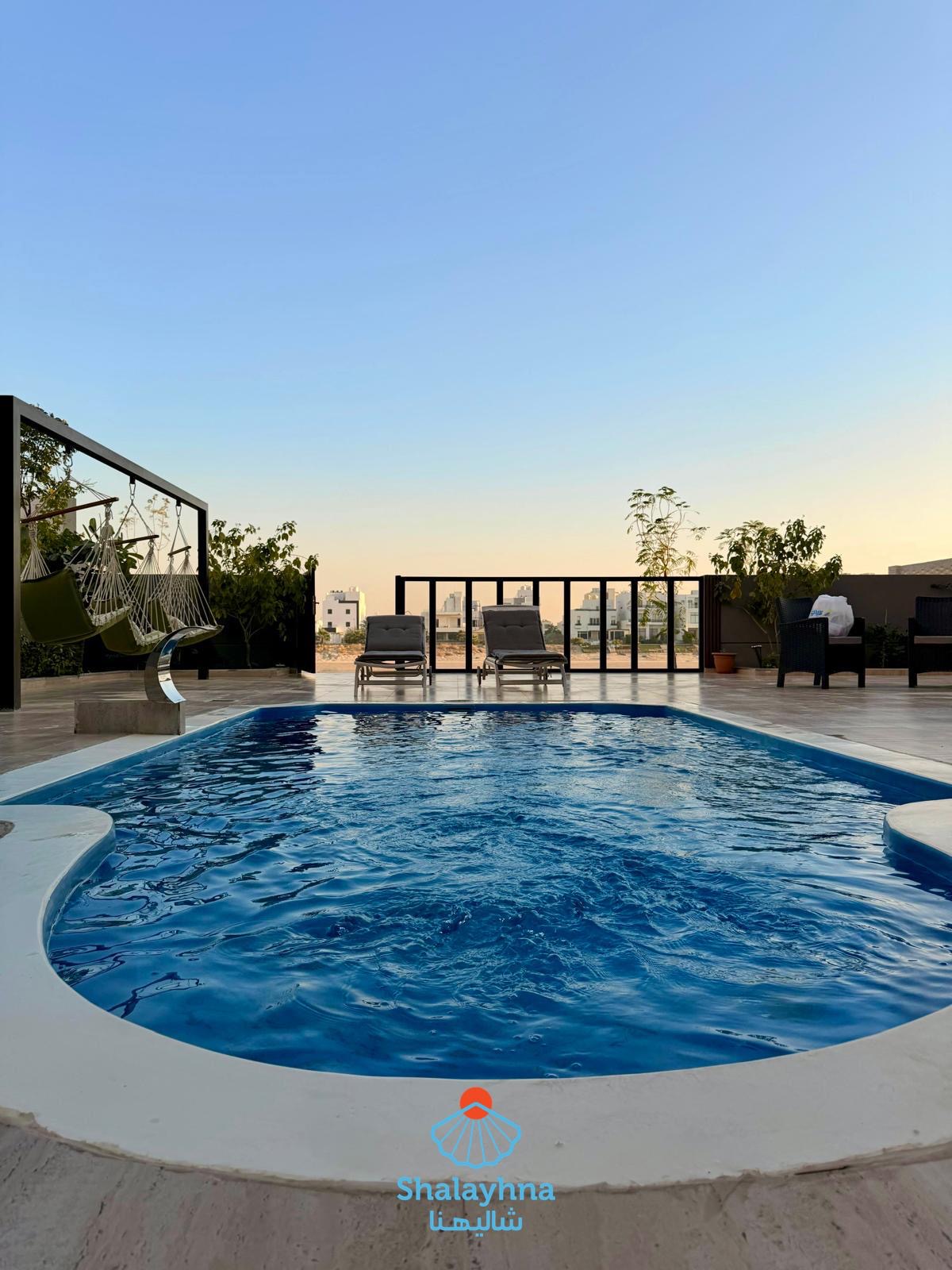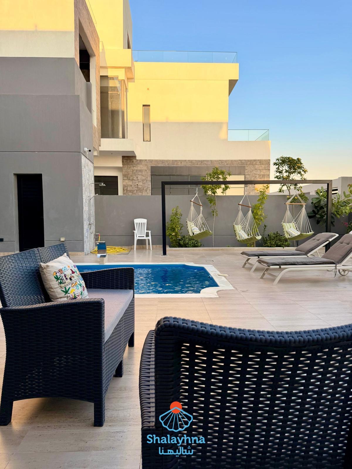 🏡✨ Luxury Ground-Floor Chalet – No Stairs, Full Comfort Enjoy ultimate privacy and easy access, perfect for families and seniors. 🏊♂️ Private Outdoor Swimming Pool Complete privacy – Relaxing atmosphere – Enjoy all day long. 🛏️ Spacious Layout: ✔ 3 Master Bedrooms ✔ 1 Kids Master Bedroom ✔ All bedrooms with private bathrooms ✔ No maid’s room Designed for maximum comfort and family convenience. 🍳 Fully Equipped Kitchen with Premium Appliances: Refrigerator + Freezer Oven + Stove Microwave Air Fryer BBQ Grill Capsule Coffee Machine Kettle Tea Cooler Ice Maker Electric Chopper Modern functional sink All kitchen tools and utensils are brand new and fully equipped. 🛁 Bathrooms Fully Stocked for Your Comfort: Toothpaste Toothbrushes Soap Shampoo Conditioner ✨ The chalet is fully ready — Just bring your clothes and enjoy a luxurious, stress-free stay.